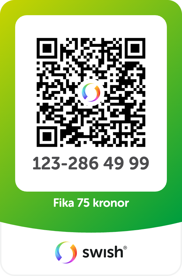 QR-kod för betalning av Medlemsavgift 1)Skanna koden i Swish-appen 2) Vill du betala för flera personer kan du ändra beloppet genom att först radera det angivna beloppet. Ställ markören i slutet av beloppet, radera genom att klicka bakåt, och skriv sedan in det nya beloppet. 3. Swisha med hjälp av ditt BankID